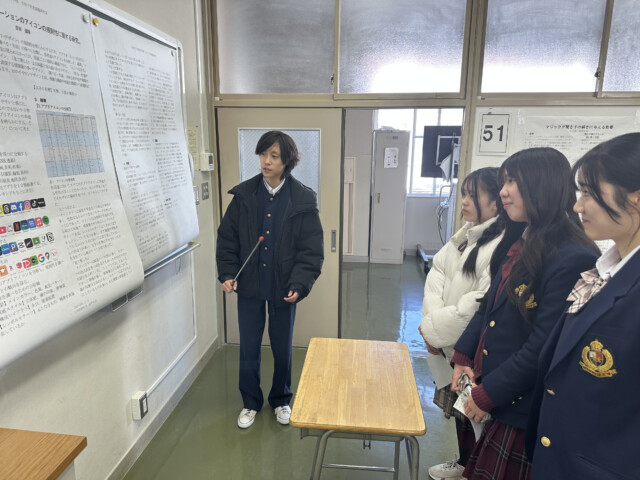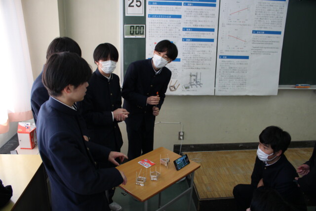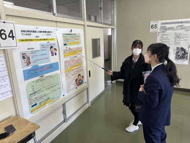 2月12日 (木) に、1学年課題研究Ⅰ (AM)・2学年課題研究Ⅱ (PM) の発表会が行われました。1年間行ってきた研究について、1学年は口頭発表、2学年はポスター発表で内容を発信しました。生徒間で質疑も活発に行われ、外部の方からも貴重な意見を頂きました。これで研究活動はいったん区切りとなりますが、1年間を振り返って今後の活動につなげていきましょう。