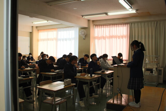 1年生が取り組んでいるサイエンスアプローチⅡの最終発表をクラス毎に行いました。各々が自由にテーマを設定し、そのテーマについて調査したことを発表しました。